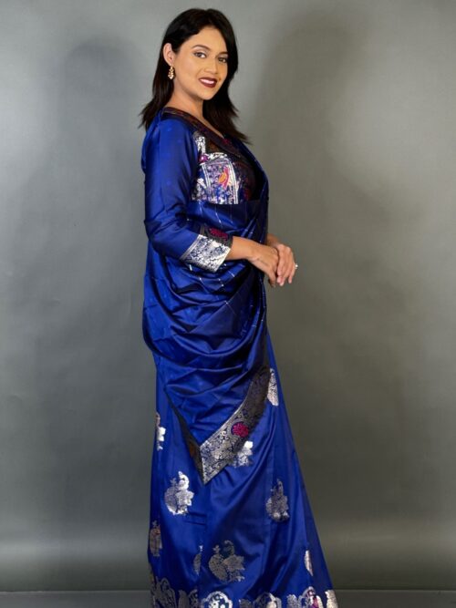 Blue Aura Plus-Size Semi Katan Benarasi Fusion Saree Set