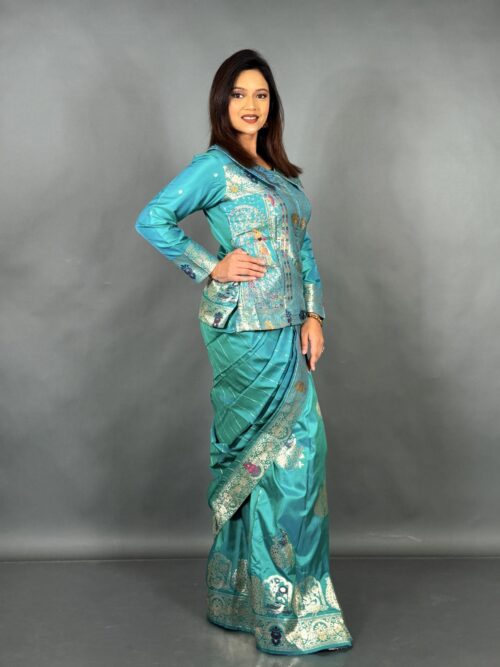 Plus Size Sea Green Majesty Ready-to-Wear Banarasi Saree Set