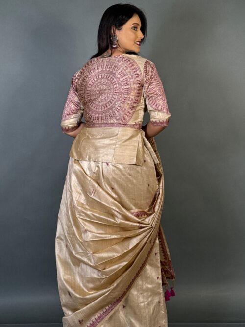 Midnight Charm Virgin Tussar Silk Ready-to-Wear Saree Set