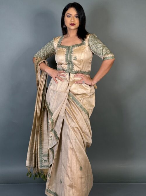Emerald Grace Virgin Tussar Silk Ready-to-Wear Saree Set