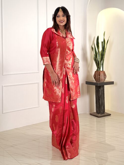 Blossom Red – Semi Katan Benarasi Plus Fusion Set