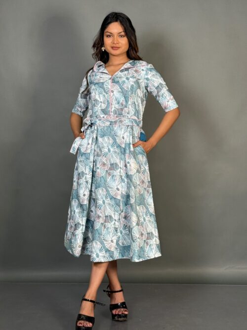 Peacock Blue Muslin Co-Ord Set with Artistic Print