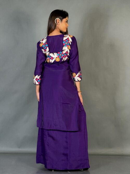 Regal Purple Italian Crepe Embroidered Jacket-Style Top