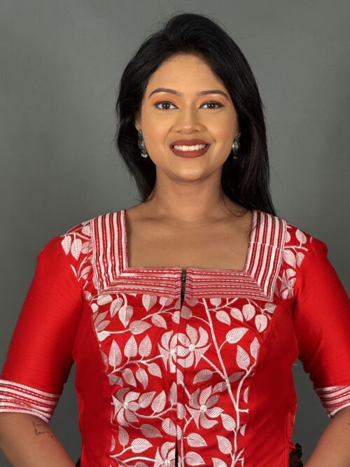Crimson Grace Embroidered Red & White Malai Cotton Blouse