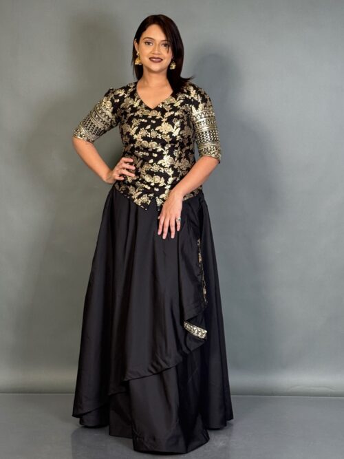 Midnight Grace Black Benarasi Plus-Size Blouse and Skirt Set