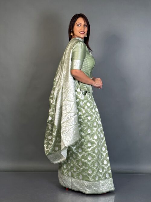 Pista Bloom Jamdani Ready-to-Wear Saree Set