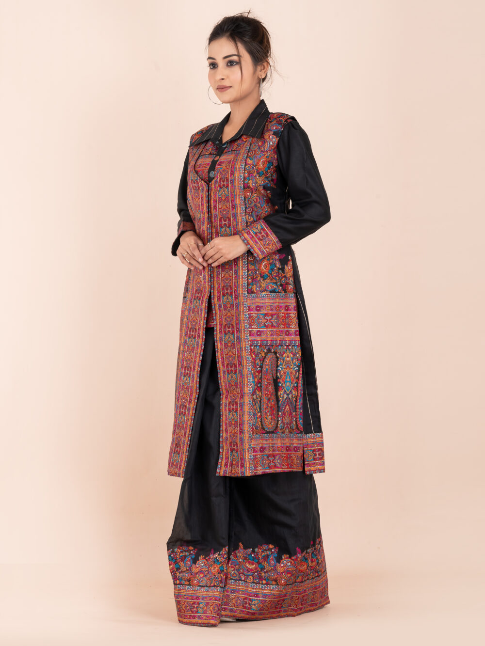 Black Chanderi Weave Fusion Skirt Jacket Set