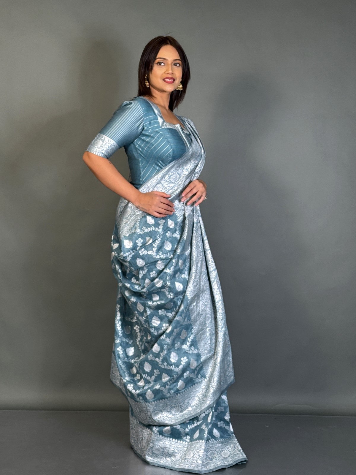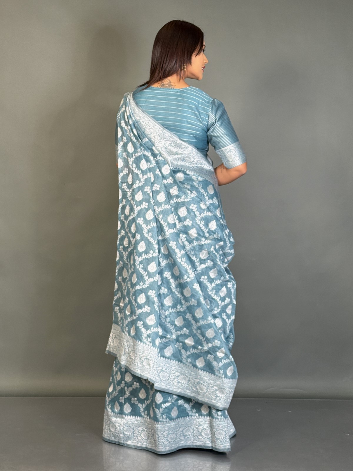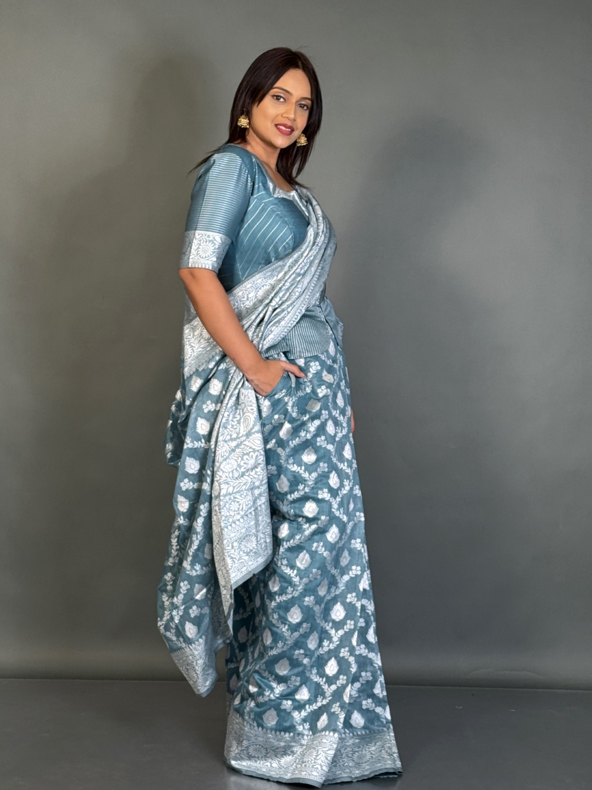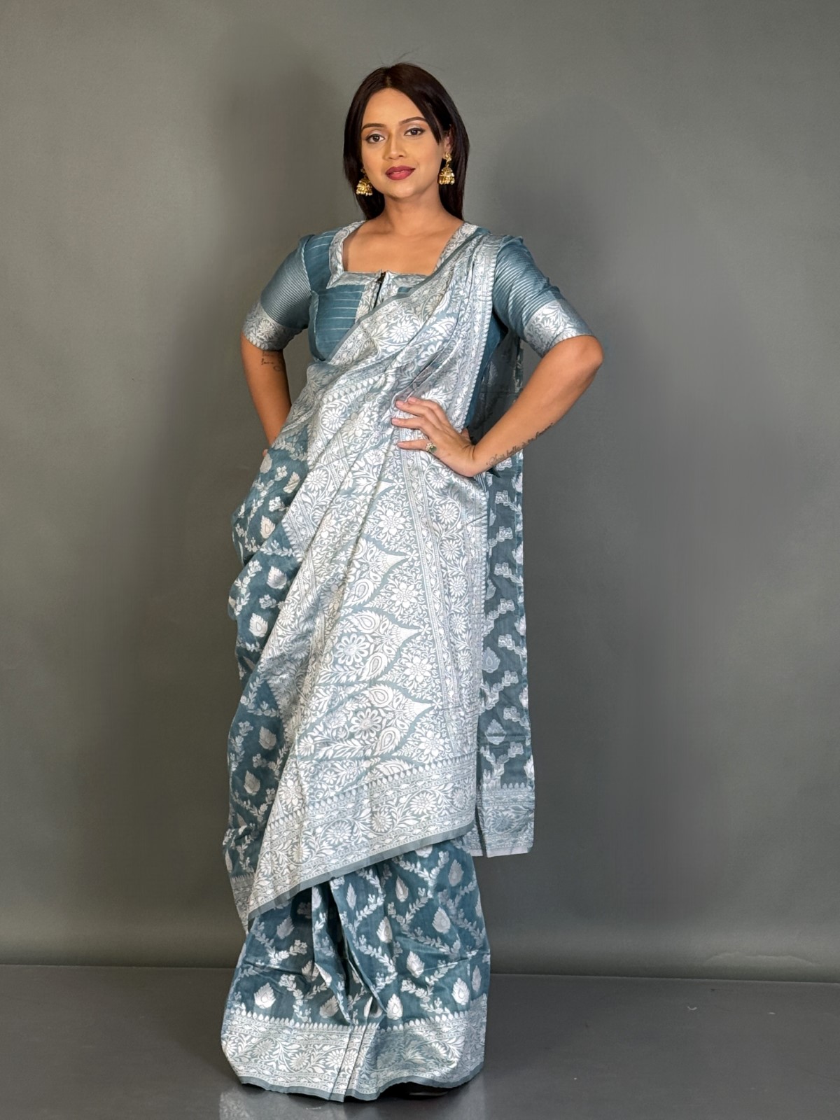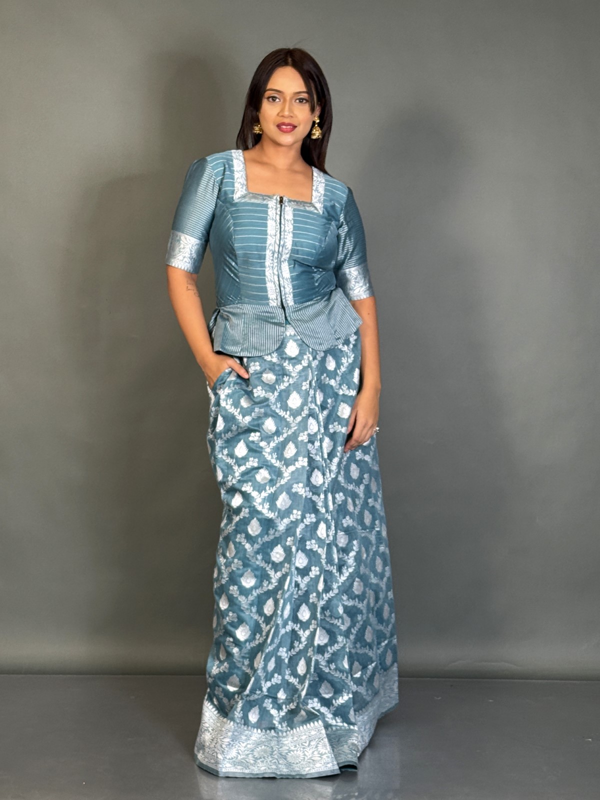 Celeste Weave Jamdani Ready-to-Wear Saree Set