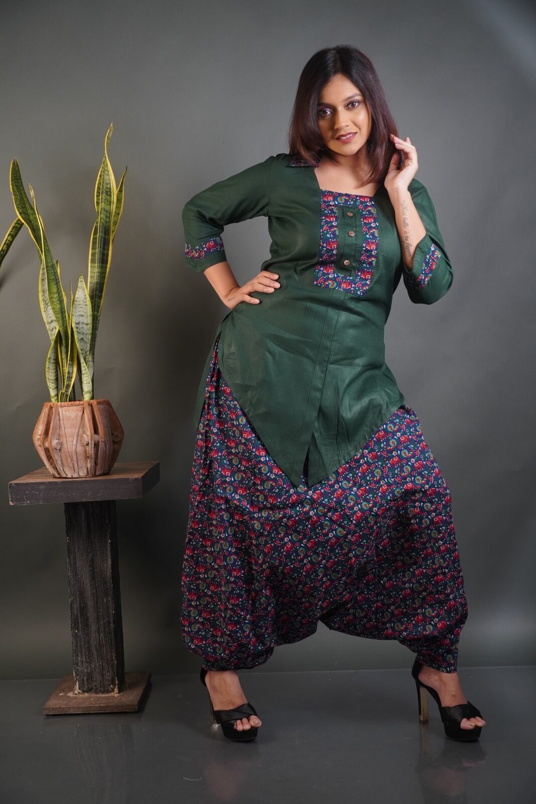 * Color: Top – Bottle Green | Pant – Maroon & Bottle Green Printed
