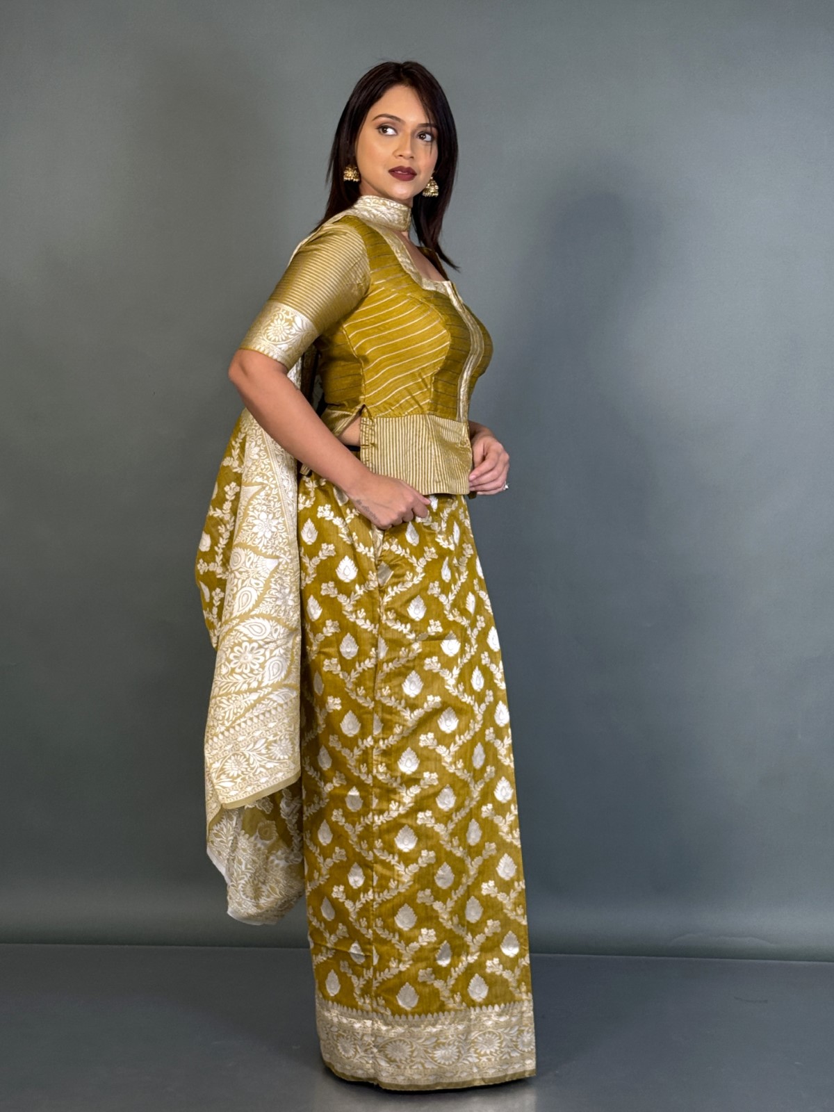 Golden Muse Jamdani Ready-to-Wear Saree Set