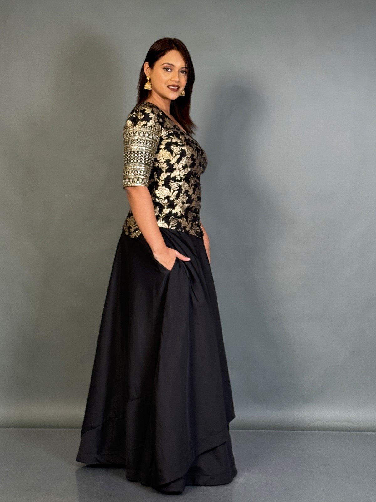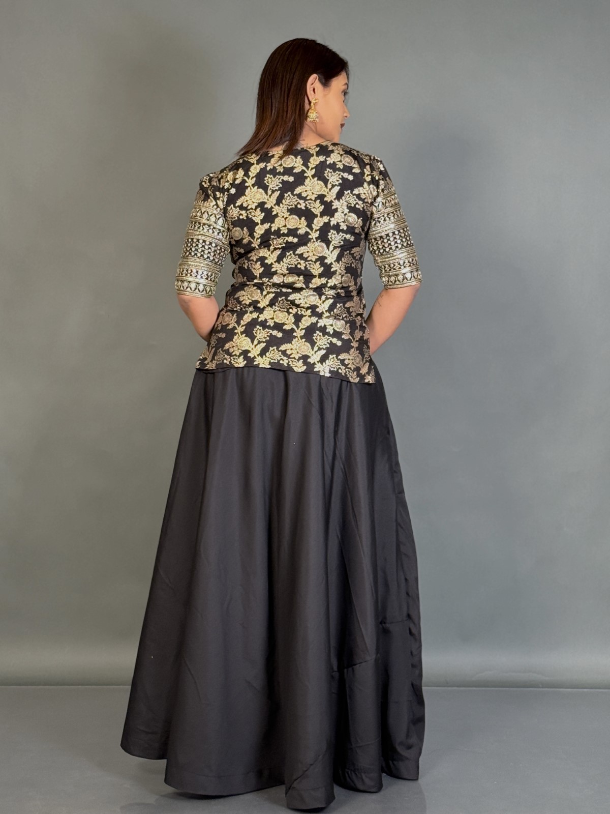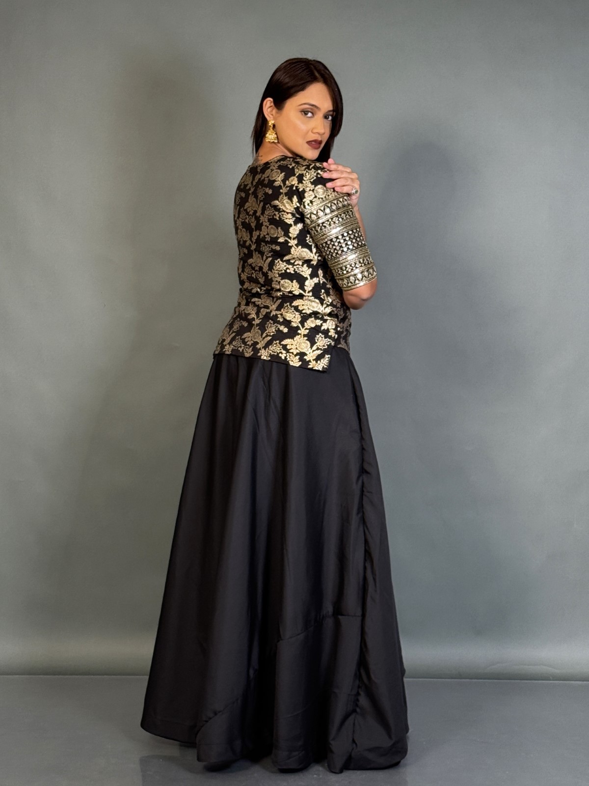 Midnight Grace Black Benarasi Plus-Size Blouse and Skirt Set