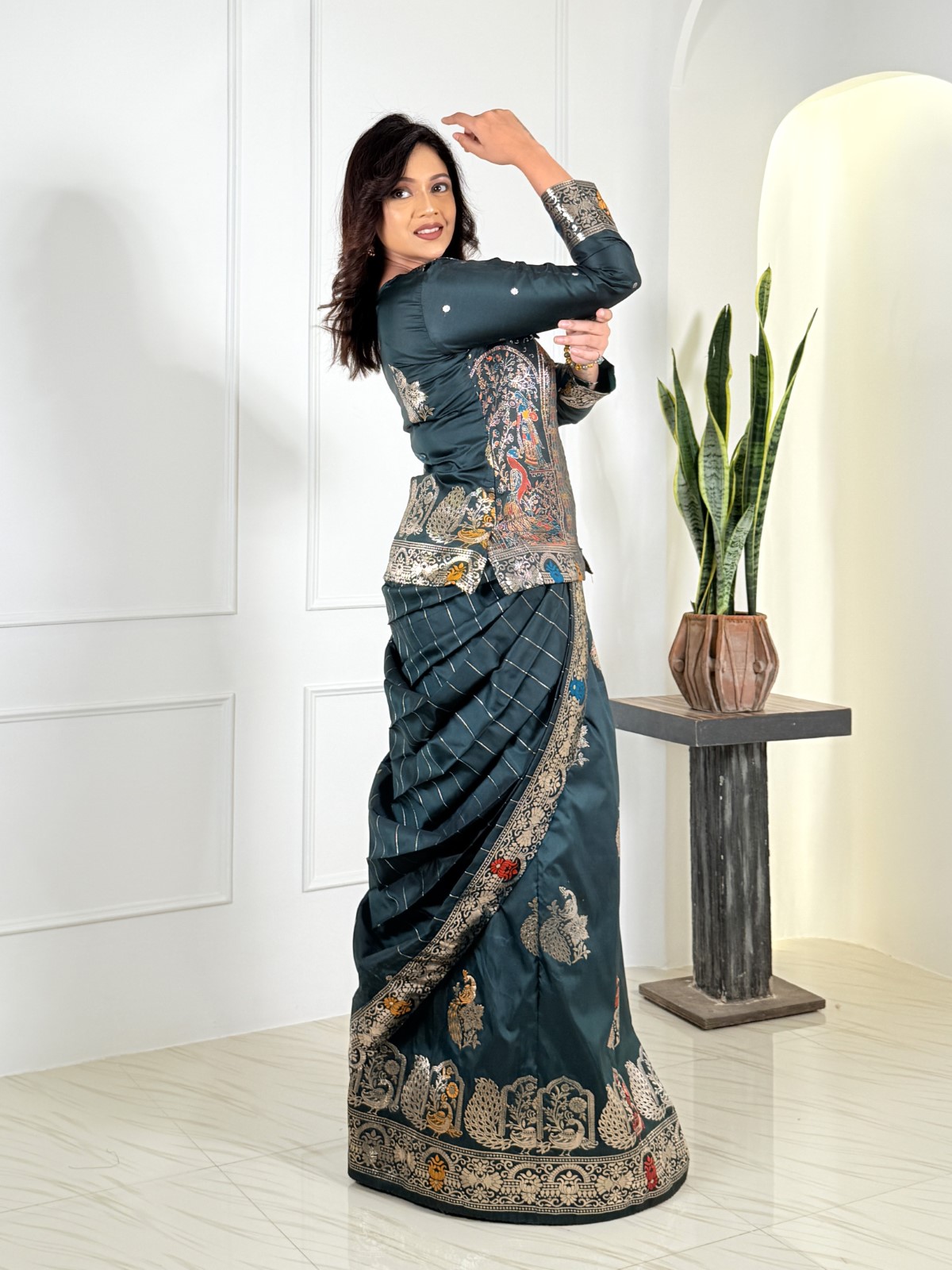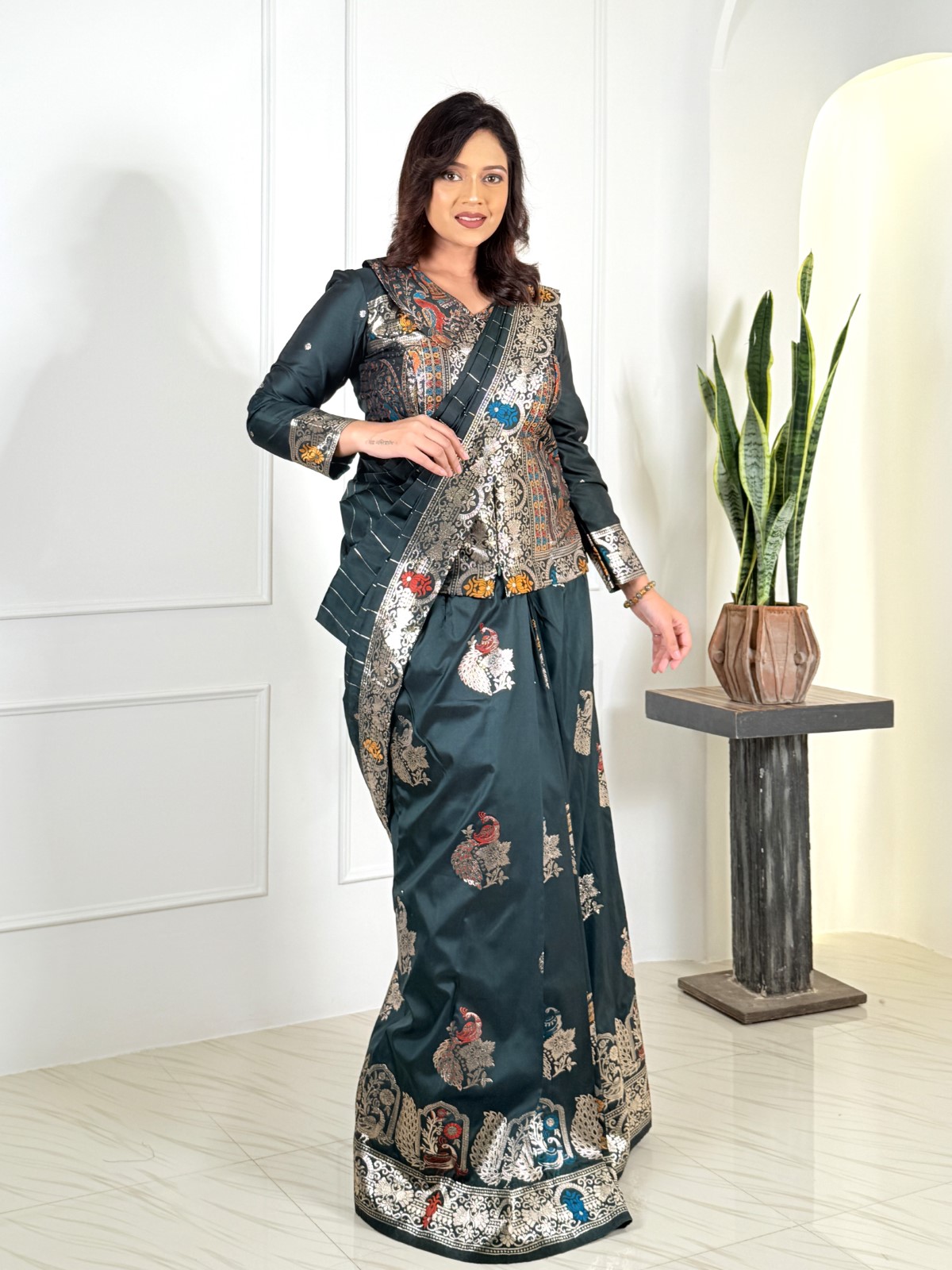 Midnight Majesty Dark Peacock Benarasi Fusion Set