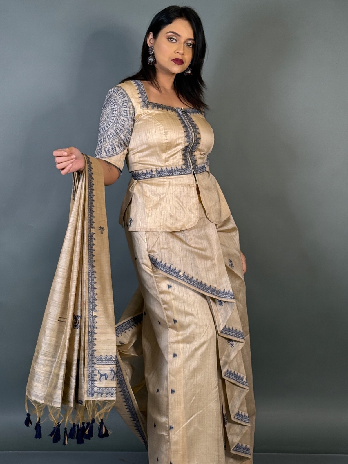 Be the first to review “Regal Virgin Tussar & Navy Blue Ready-to-Wear Saree Set” Cancel reply