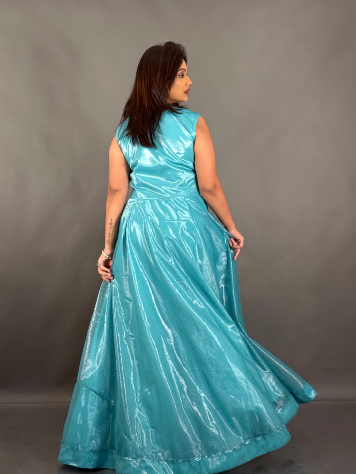 - Sleeve Style: Gown – Sleeveless, Jacket – Full Sleeve