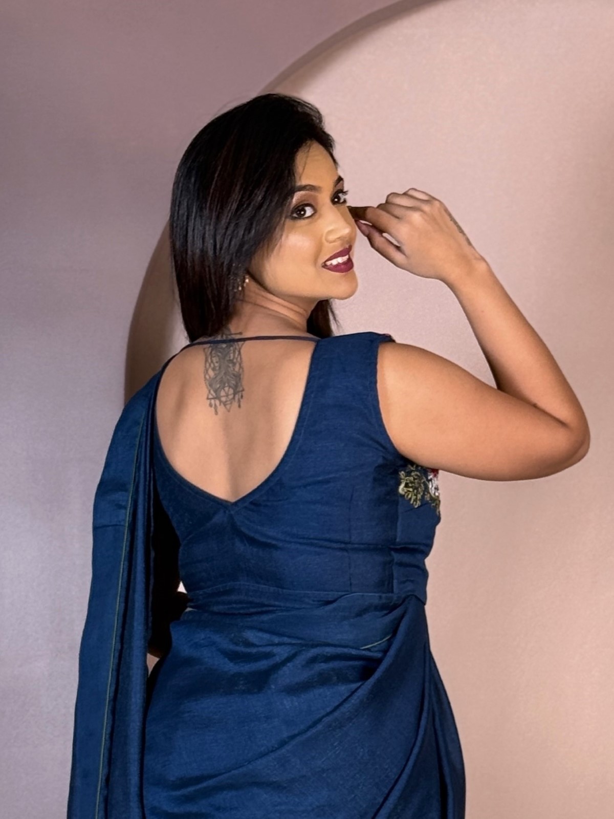 Add a touch of luxury to your ethnic collection with the Twilight Peacock Chinon Silk Overlap Party Blouse, crafted for the modern woman who loves timeless elegance. Made from premium crushed chinon silk, this sleeveless blouse showcases fine embroidery detailing that enhances its regal charm. The front zip with overlap style gives it a contemporary silhouette, ensuring effortless wear and a refined look. Designed with a V-neckline and slim fit, it accentuates your natural curves beautifully. Perfect for partywear, festive gatherings, and special occasions, it pairs gracefully with sarees, lehengas, or fusion skirts. Available in inclusive sizes 38 to 52, this blouse combines comfort, sophistication, and style in every stitch. Maintain its elegant texture and shine with gentle cold-water hand wash or dry cleaning for lasting beauty.