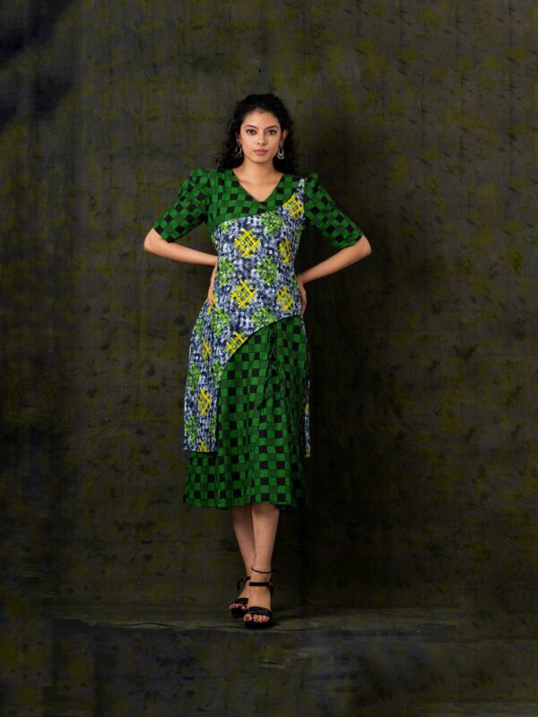 ZigFlora Charm – Maroon & Emerald Indo-Western Cotton Fusion Dress